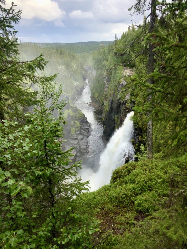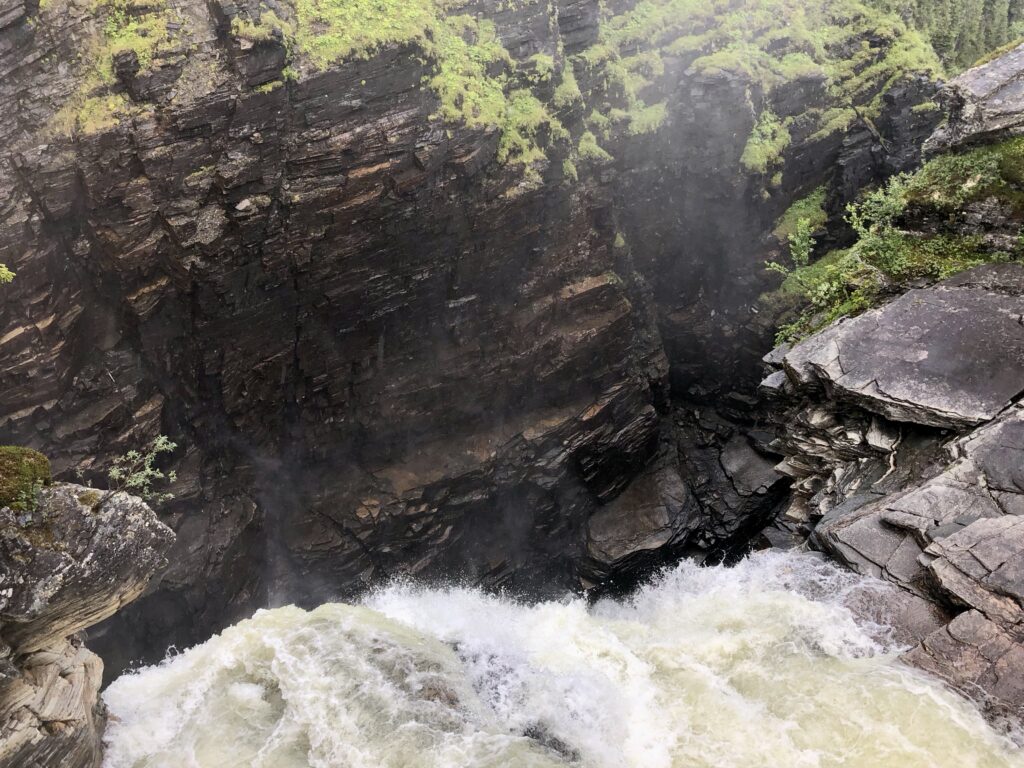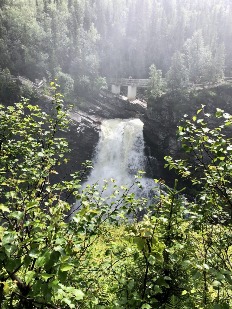 • Nach dem Frühstück ging die Fahrt weiter Richtung Ende der Wildnissstraße. Kurz vor dem Ende haben wir noch einen traumhaften Wasserfall bei warmen und regnerischen Wetter bestaunt.