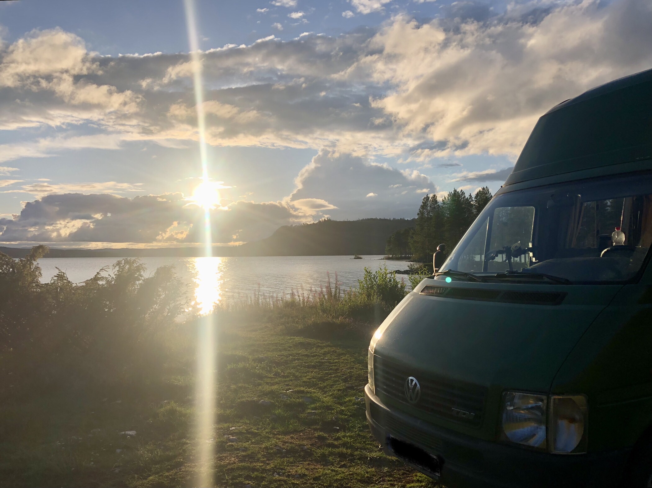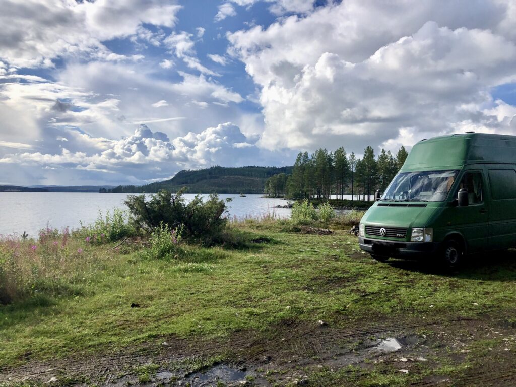 • Nun ging die Suche nach einem neuen Stellplatz los. Diesmal haben wir erneut einen an einem traumhaft schönen Badesee gefunden. Wenn es (trotz sporadisch auftauchender Sonne) nicht so kalt wäre, wären wir auch schwimmen gegangen.